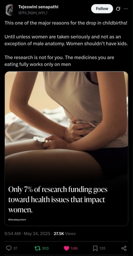 destructdisc@lemmy.world · edit-26 months agoMedical science is in fact terribly biased against women because the standard baseline is almost always a typical male bodyplus-squarelemmy.worldimagemessage-square34linkfedilinkarrow-up1247arrow-down174