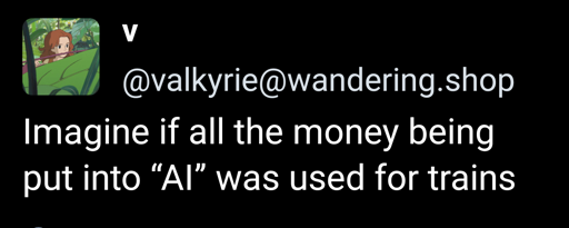 arrow-up11.25Karrow-down1imageTrains 🤧plus-squarepiefed.cdn.blahaj.zoneio@piefed.blahaj.zoneEnglish · 3 days agomessage-square116linkfedilink