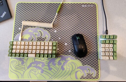 I have been using this setup for about 2 years now. I’m a touch typer and I used completely blank keycaps for a while so the keycaps are really just for looks and feels these days.