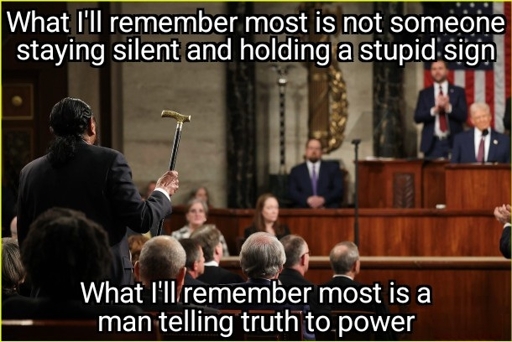 Alternatively, all Dems could have stayed completely absent from this joint address. Having their half of the aisle totally empty and just leaving it to the Republican pep rally it was would have been more powerful than the stupid stickers.