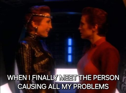 The memed episode is actually the other time loop one, the one with double Picard is earlier and they are stuck in the “maw” of some sort of entity that wants to consume the enterprise.