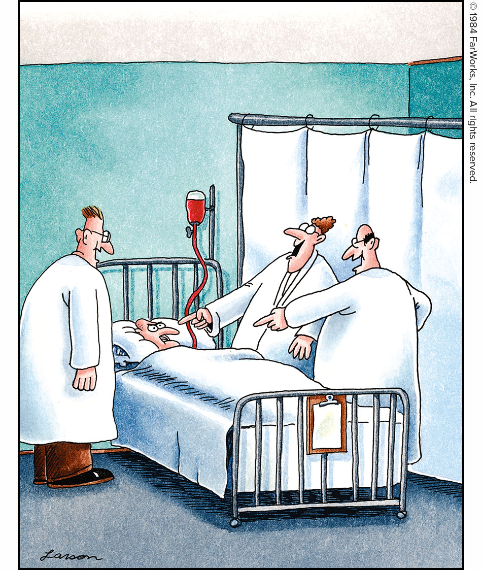 Also, it’s the one who needs medical attention that’s supposed to be laughing.