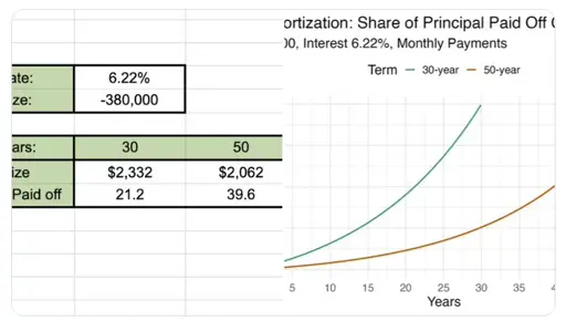 Yeah, the decrease in monthly payments simply isn’t that much. Going from 15 years to 30 is a big decrease. 30 to 50, not so much.