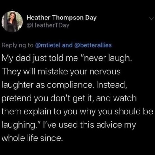 When do you laugh ‘nervously’? When the joke made was from someone with power over you; when it was racist, sexist, or otherwise crass; or maybe when you just don’t want to be near the person making it.