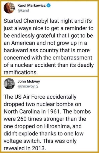 The other is a military accident. There could have been no coverup if the bombs went off.