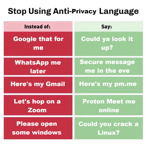 Picking another corporation to base your language around isn’t better. Why not refer to the general privacy concepts that corporation claims to have?