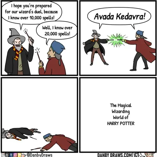 That’s why Dumbledore kicked Voldemorts ass by flinging a statue infront of him, them doing a bunch of fancy shit, encasing him in ice. Since it’s easier to hit than with an Avra Kedavra. Not that it matters until the author is no longer alive…