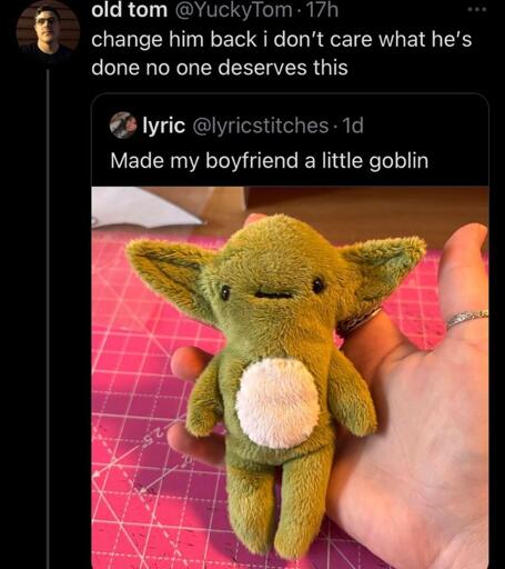 Little goblin thoughts, like making goblin stew, crafting goblin traps, infecting little goblin poo-knives, training small animals to be goblin mounts,
